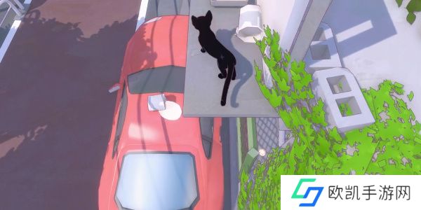 2、玩家到达位置后,可以看到有一一辆红色的车,可以借助旁边的车上到这个房顶上;