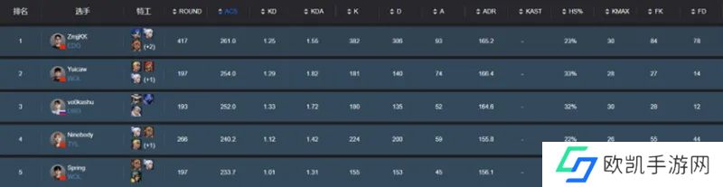 首先,我们来谈谈留队的三名老选手。Yuicaw,作为队内的全能补位王,前FPX和ASE的明星选手,来到WOL的第一年依然是队内不可替代的中流砥柱,其在今年联赛第二赛段更是打出了仅次于康康的第二高ACS表现,这还是在队伍没能打进季后赛且他个人在决斗、控场、先锋、哨位四个位置的角色均玩过的情况下打出的豪华数据。