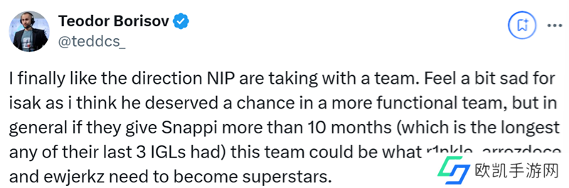 Isak Fahlén | isak感到惋惜,因为我觉得他理应在一支运作更顺畅的队伍里获得机会。但总体来讲,如果他们给Snappi超过10个月的时间(这是他们过去三任指挥在位时长的最高纪录),这支队伍或许就能成为r1nkle、arrozdoce和ewjerkz成长为超级巨星所需的平台。