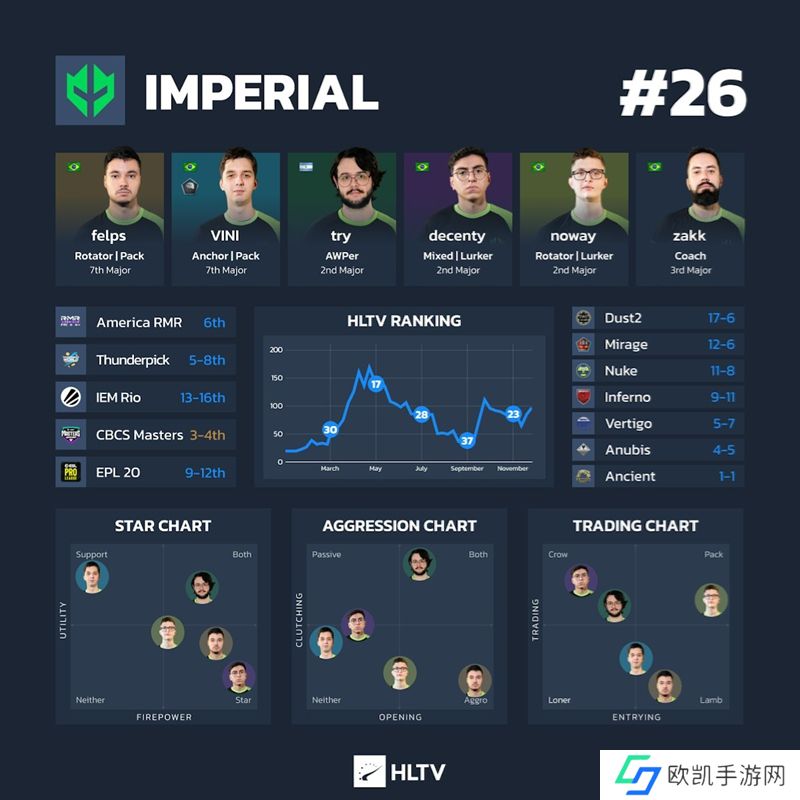 数据:decenty在地图两侧的位置都很困难(预期rating 1.02,队内第四),但他是Imperial最好的步枪手,rating为1.12(+0.10)。