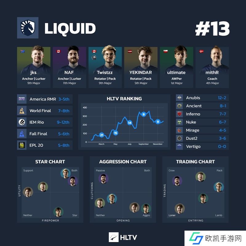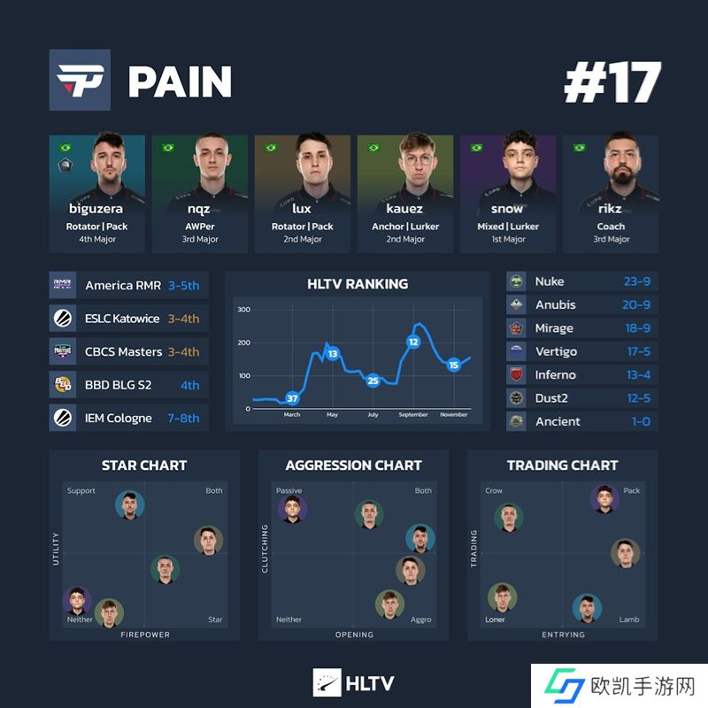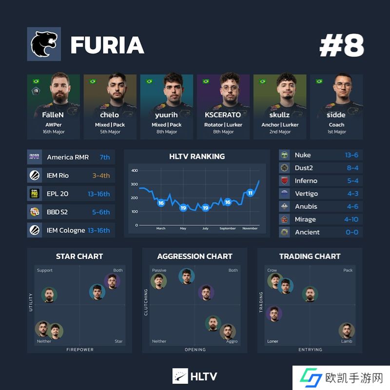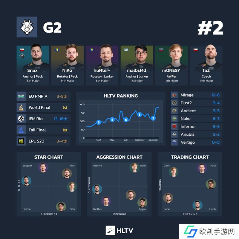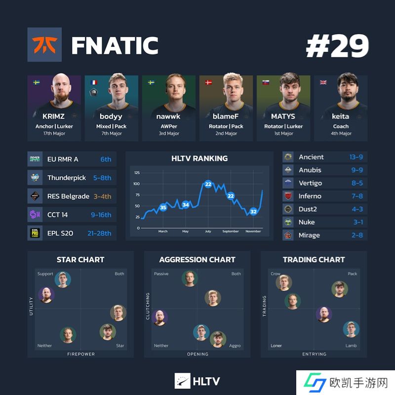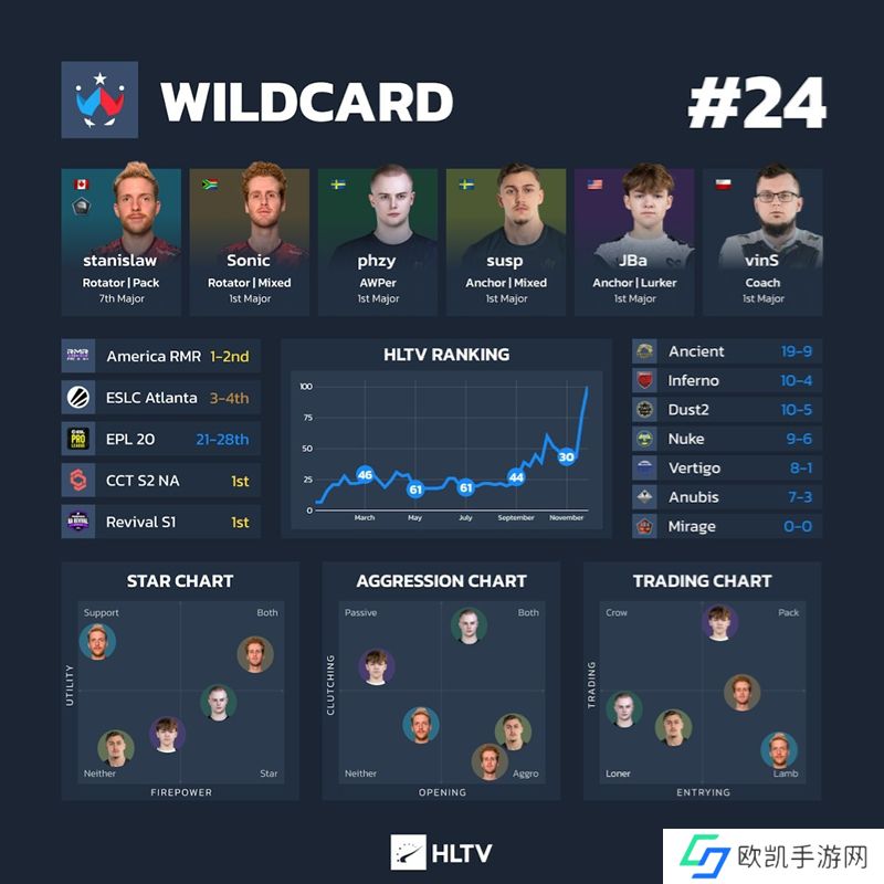 为了让看关门了解上海Major参赛队伍的最新情况,这里有一份关于所有24支参赛队伍的深度信息图表,按照他们的HLTV世界排名排序。