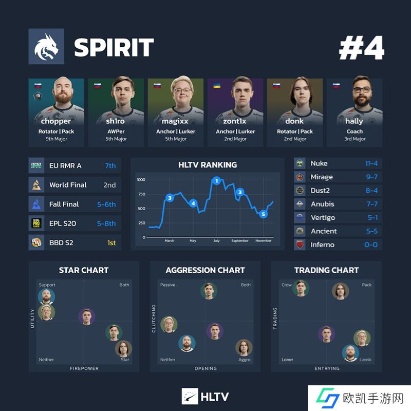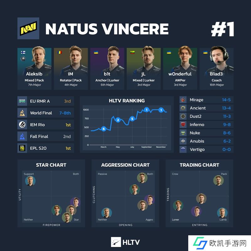 趣事:自7月22日首次登顶以来,Natus Vincere在过去19周中有17周排名第一,是今年排名第一最多的队伍,超越了FaZe(14 周)。他们也是唯一参加了全部21届Major的队伍。