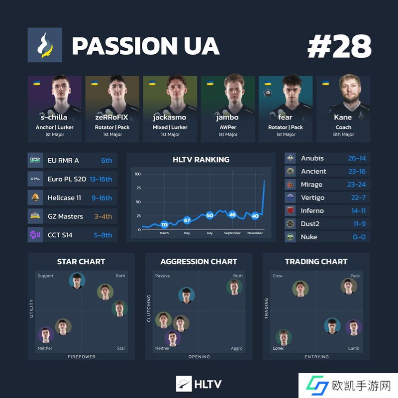 趣事:Passion UA是本次Major中最年轻的队伍,平均年龄为19.8岁,自今年2月签约以来,他们一直在进行一项被fear称为300天集训的活动,在波兰同吃同住,在短短的265天内打了362张地图。
