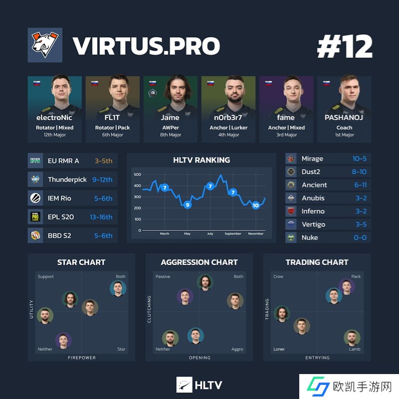 数据:Virtus.pro从未真正从失去主场地图Overpass的阴影中恢复过来,尽管Dust2是他们最喜欢的地图,但自9月份以来,他们在Dust2上只取得了3胜5负的战绩。