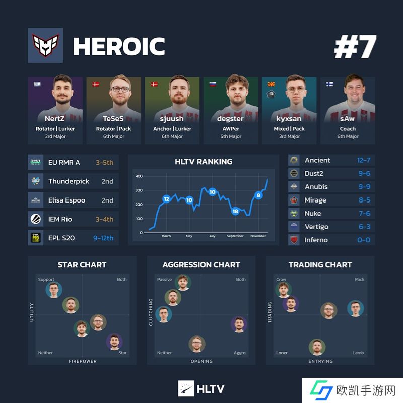 趣事:TeSeS和sjuush在他们与HEROIC一起参加的前四届Major中都进入了淘汰赛,但在哥本哈根却未能打进八强。在闯入世界排名前七名后,他们将上海Major的目标定为前八名。