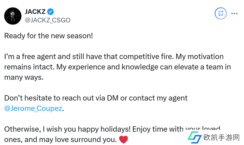 日前法国老将JACKZ在社交平台上分享了自己的求职意愿,他希望能够在新赛季继续征战沙场。