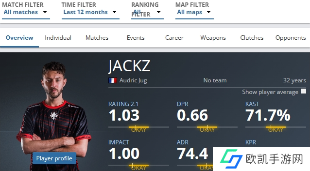 在过去的12个月中,JACKZ能打出1.03的rating。