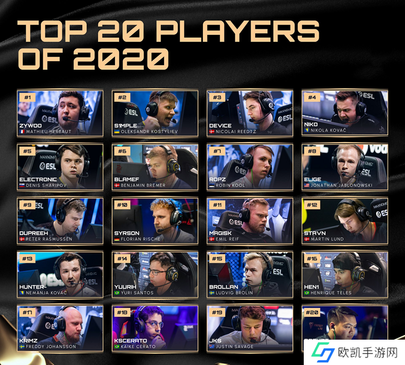 2020年HLTV年度最佳选手TOP20名单如下: