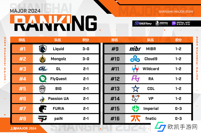 上海Major开幕阶段第二日比赛已经结束,在第二日比赛中,