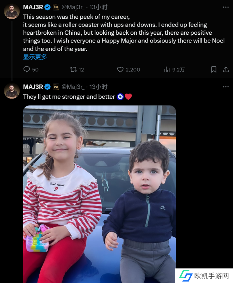 这就像是过山车,有起有落。我在中国最终感到心碎,但回顾这一年,也有积极的事情。祝大家Major快乐,当然还有圣诞和新年。我花时间和家人在一起治愈我的伤口。不久再见,保重。”